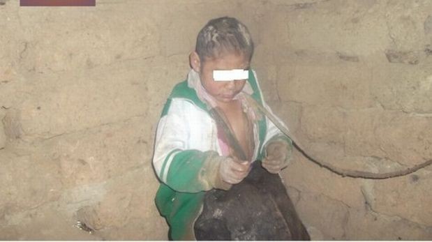Un niño de 10 años y con retardo mental fue encontrado por agentes de la Dirección Regional de Áncash en un cuarto oscuro, semidesnudo y con una soga en el cuello.