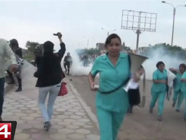 Más de 300 enfermeras de EsSalud fueron dispersadas por la policía mientras realizaban una marcha obstaculizando la Panamericana Norte. Debido a los gases lanzados por los efectivos policiales, decenas de enfermeras y una reportera de un medio local quedaron afectadas, por lo cual fueron trasladadas de inmediato a un hospital.