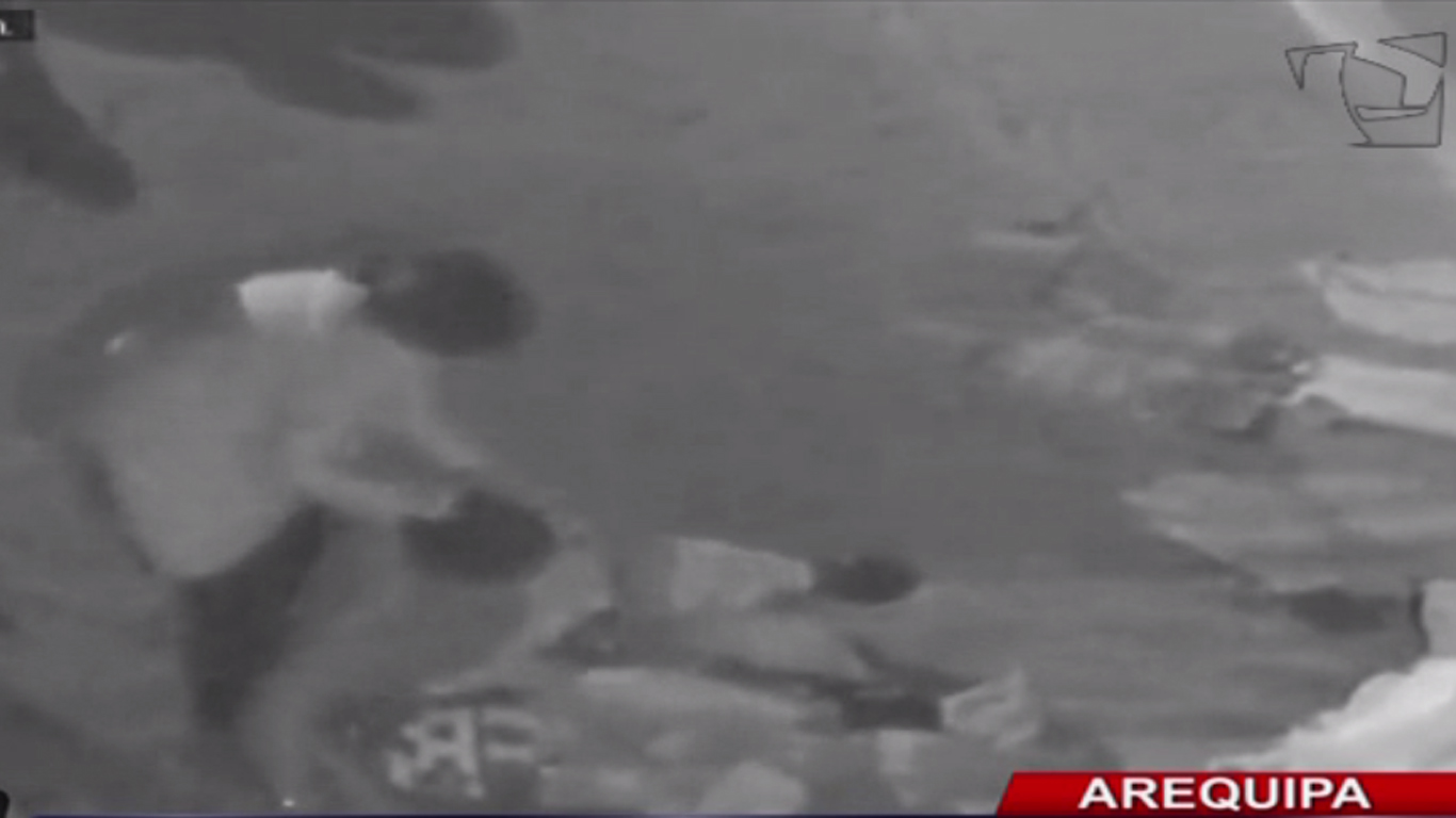 Las cámaras de seguridad de Arequipa captaron los momentos en que una mujer agrede salvajemente a su esposo, quien fue desalojado de su vivienda con todas sus pertenencias. La mujer no soportó que su marido llegara ebrio a su vivienda y descargó su cólera contra su pareja, quien adormecido por el alcohol que había ingerido, aguantaba todos los golpes en silencio. Finalmente agentes de Serenazgo lograron rescatar al sujeto.