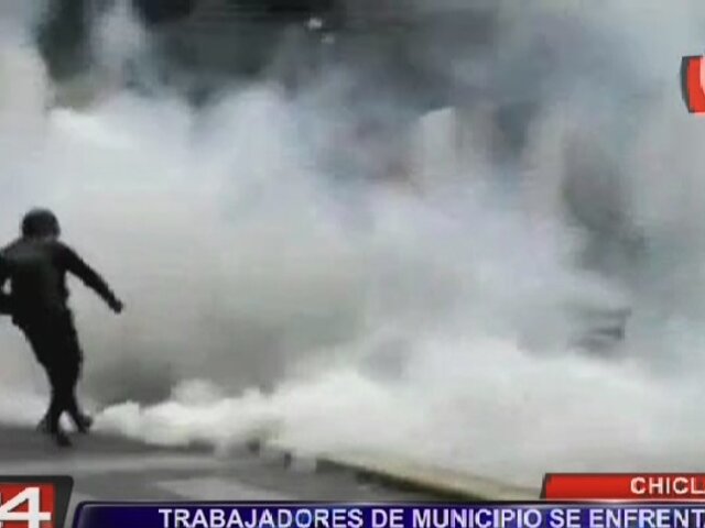 Con bombas lacrimógenas, la policía intentó dispersar a más de dos mil trabajadores y ex servidores públicos de la Municipalidad de Chiclayo, quienes exigían el pago atrasado de sus sueldos.