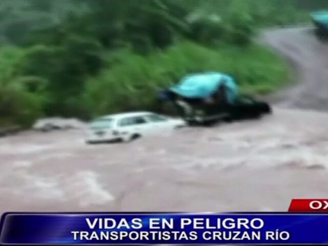Choferes arriesgan sus vidas y las de sus pasajeros al cruzar los ríos de Oxapampa. Las intensas lluvias torrenciales que afectan esta provincia incrementaron los caudales de los ríos y quebradas. Algunos de los vehículos han salvado de ser arrastrados por las caudalosas aguas, tal como lo muestran las imágenes del siguiente informe.