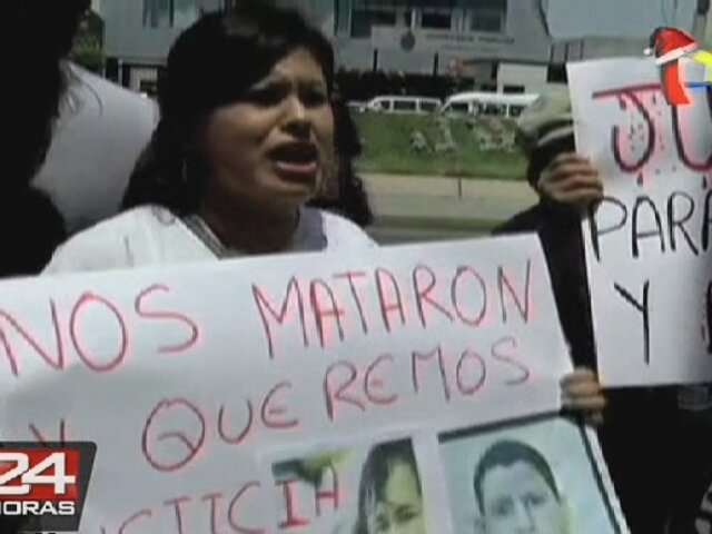 La hija del exconsejero regional de Áncash, Ezequiel Nolasco, Fiorella Nolasco Blas, protestó contra la absolución de los implicados de muerte de su padre.