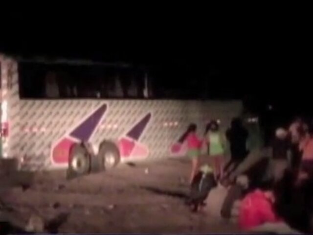 Al menos dos personas fallecieron luego que un bus interprovincial de la empresa Civa impactara contra un camión que transportaba frutas, en Palpa, región Ica.