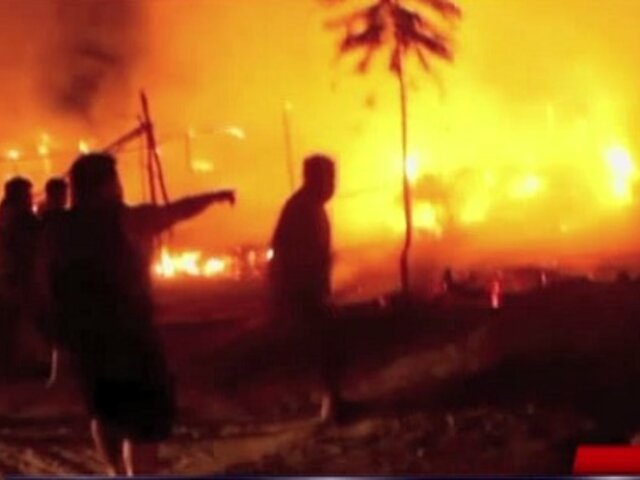 Fuego arrasó con precarias viviendas en el asentamiento humano Teresa de Barrios. Se desconocen las causas del siniestro.