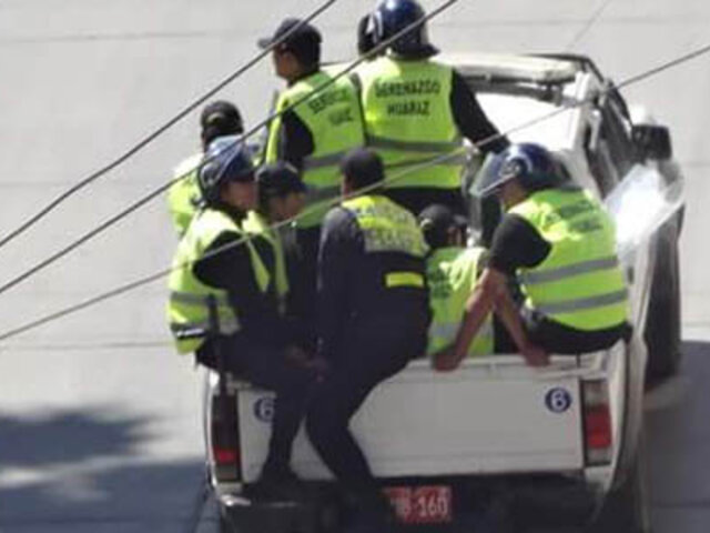 Se trata de efectivos de la municipalidad provincial quienes se trasladan temerariamente infringiendo el reglamento de tránsito.
