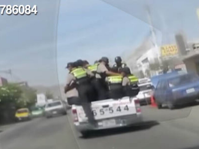 WhatsApp: más de 10 policías viajan en la tolva de una camioneta en Arequipa