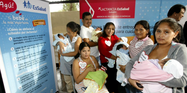 Essalud redujo a 72 horas el pago de 820 soles por concepto de subsidio por lactancia. Las madres afiliadas podrán cobrar este bono en cualquier agencia del Banco Continental, previa presentación de una solicitud en las oficinas de la institución. Se estima que con esta nueva disposición se beneficie a alrededor de 160 mil mujeres a nivel nacional.
