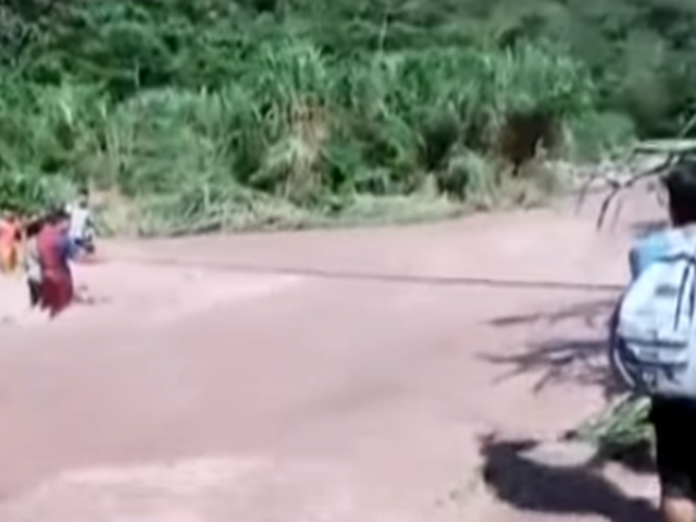 Las personas se ven obligadas a cruzar caudaloso río agarrados de una soga.