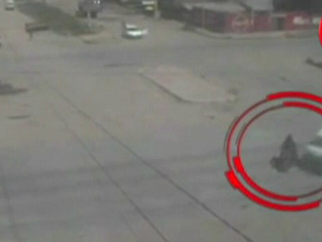 El accidente quedó registrado por las cámaras de vigilancia de la zona y en las imágenes se ve como los dos tripulantes de la motocicleta intentan cruzar la pista de forma imprudente y terminaron colisionando contra una combi.