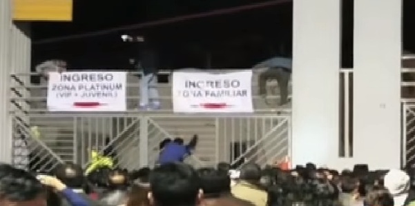 Las personas en su afán por ingresar al local, burlaron el cordón de seguridad, se empujaron y hasta treparon las rejas del lugar, ya que tenían sus tickets pagados. Fueron más de dos mil personas que no ingresaron al lugar.