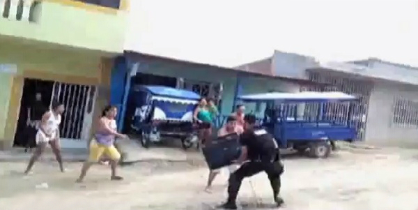 Al percatarse del hecho, los pobladores del lugar decidieron grabar el momento que los policías sacan el televisor de la vivienda y de manera accidental dejan caer el artefacto cuando pretendían ponerlo en la tolva de la camioneta policial.
