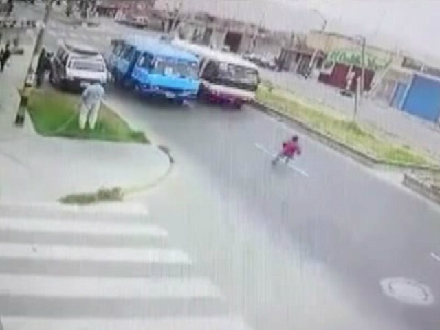 Cámaras de seguridad registraron el hecho y en las imágenes se observa al menor esperando que los vehículos se detengan para cruzar y poder pasar a la otra vereda.
