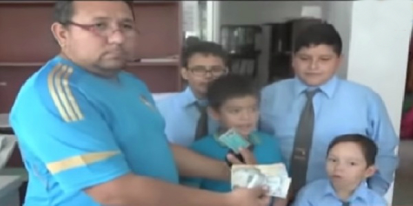 El dueño de la billetera, le pidió permiso al profesor de los pequeños para darles una recompensa por su honestidad.