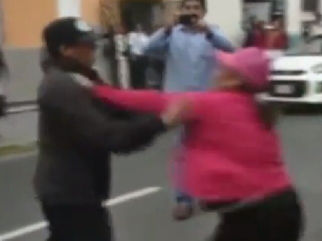 En la plaza de armas de Trujillo, dos vendedoras ambulantes se enfrentaron contra fiscalizadores de la municipalidad que intentaban decomisar su mercadería. Una de las vendedoras rompió con una cuchara el espejo retrovisor de una camioneta de Serenazgo.
