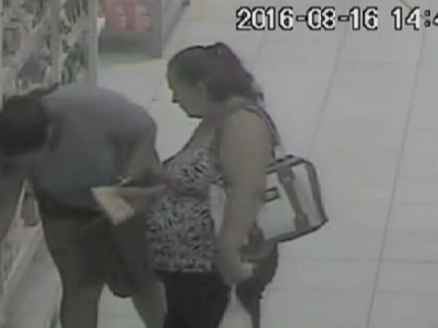 Las cámaras de seguridad de un conocido centro comercial en Piura, registraron el preciso momento en que dos mujeres roban productos y los guardan en su cartera. Sin embargo personal del supermercado logró intervenirlas antes que abandonen la tienda.