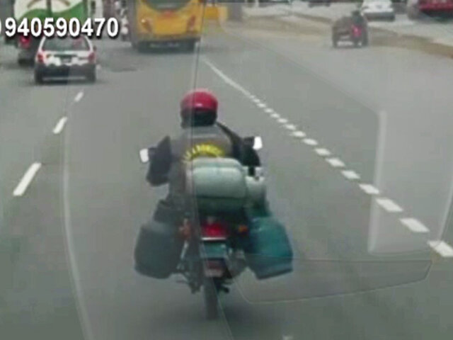 Carretera Panamericana Norte: Moto circula temerariamente con cinco balones de gas