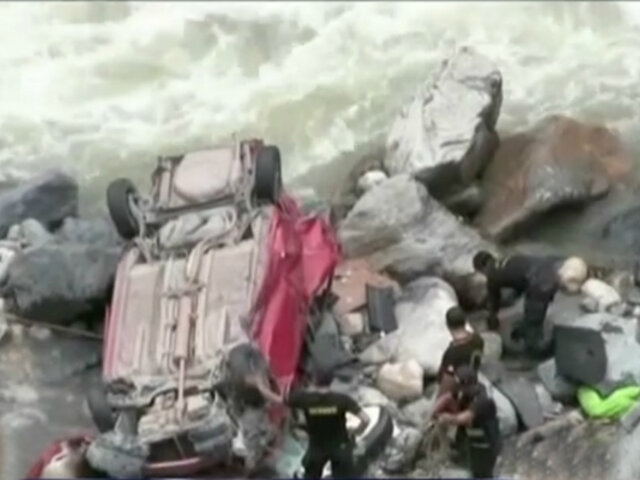 El auto donde viajaban terminó al fondo de un abismo sobre unas rocas del río, totalmente destrozado. Al parecer el conductor del auto, se habría quedado dormido provocando el despiste de la unidad que hacía de colectivo.