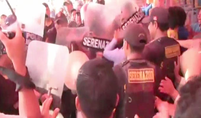 Los vendedores informales lanzaron piedras, frutas malogradas y golpearon los agentes municipales para evitar que decomisen sus productos, al final un sereno resultó herido durante el operativo que buscaba liberar las vías de evacuación para evitar aglomeraciones durante alguna emergencia.