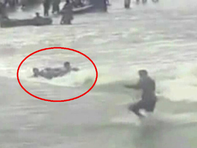 Dos jóvenes arriesgaron sus vidas al intentar cruzar la quebrada del río Seco, en Piura. Ellos usaron una llanta para poder cruzar pero debido a la fuerte corriente uno de ellos fue arrastrado varios metros.