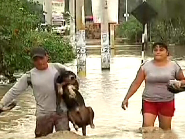 Para llegar hasta al distrito de Puente Viejo, el reportero de Panamericana Televisión tuvo que cruzar por medio de las aguas, que prácticamente le llegaban a la cintura. De igual modo, los pobladores también arriesgan su vida para ingresar a sus viviendas. Incluso, las mascotas se vieron en la necesidad de nadar para buscar un lugar seguro y ponerse a buen recaudo.