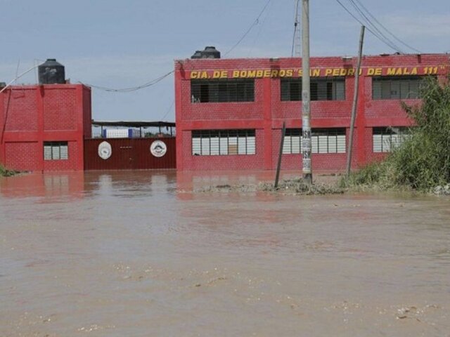 El desborde del río Mala inundó viviendas, calles y campos de vegetación. Los damnificados solicitan ayuda a las autoridades para enfrentar la emergencia.