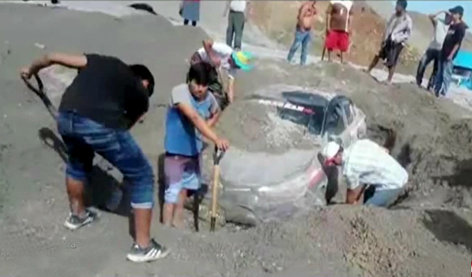 Con la ayuda de lampas, los transportistas intentaron rescatar sus vehículos que habían quedado atrapados. La Superintendencia de Transporte Terrestre de Personas, Carga y Mercancías (Sutran), informó que la vía fue cerrada.
