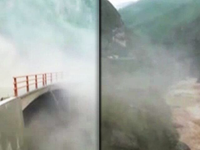 En la carretera Otuzco y La Libertad, un huaico cayó sobre la catarata Sanchicón. Así lo registraron varios transportistas que pasaban por la zona donde se puede observar cómo el deslizamiento pasa por debajo de un puente y desemboca en el río.