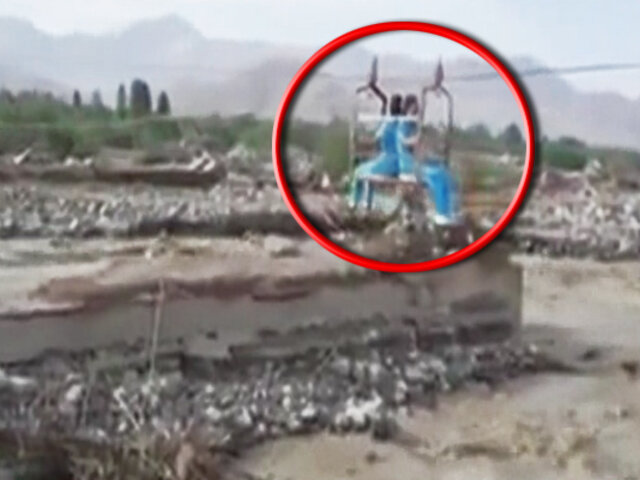 Enfermeras cruzan río con poleas caseras en Chimbote