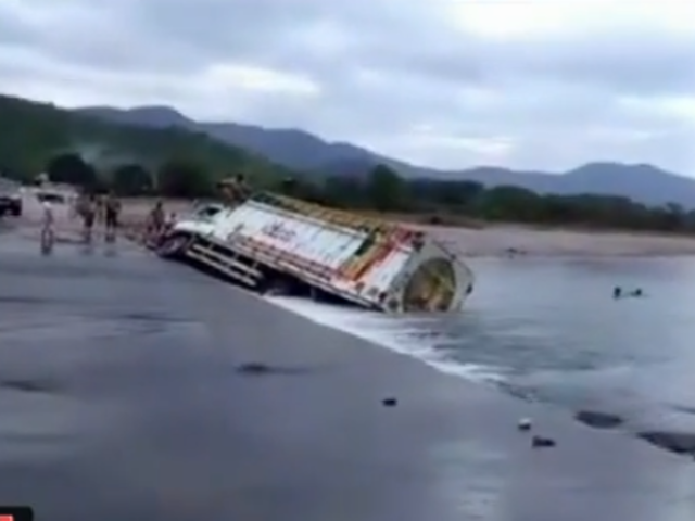 Dos personas salvaron de sufrir serias consecuencias tras la volcadura del camión en el que viajaban, cuando cruzaban la quebrada Río Seco, en la región Piura.