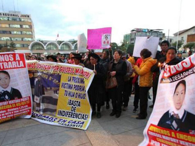 Vecinos y familiares marcharon para exigir a la Policía Nacional que ubique a niña desaparecida, en la sede de la Sexta Macro Región Policial Centro y luego hasta la Municipalidad Provincial de su ciudad.