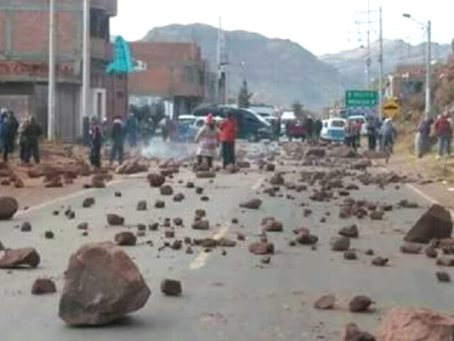 Diversas organizaciones de base entre transportistas y comerciantes, acatan un paro preventivo de 24 horas en las principales provincias de Puno en apoyo a los profesores que cumplen una huelga indefinida. Los manifestantes bloquearon con piedras la carretera que une Puno con Desaguadero a la altura de la provincia El Collao.