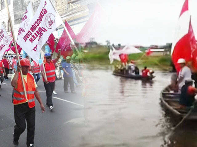 En la ciudad de Iquitos, un grupo de trabajadores de construcción civil bloquearon una parte del río Itaya. Con esta medida los manifestantes exigen el reinicio de la construcción de un hipermercado en el distrito de Belén, cuya obra se encuentra paralizada desde hace tres meses. Los trabajadores también marcharon por las calles y quemaron neumáticos como parte de sus protestas.