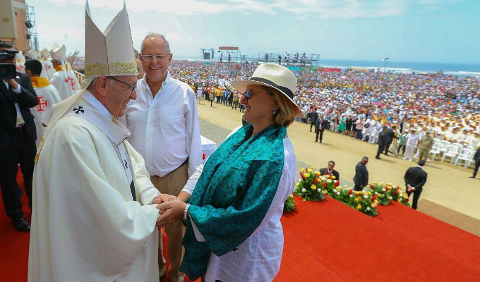 Acabada la misa, el Sumo Pontífice intercambio algunas palabras con el presidente Kuczynski y la primera dama Nancy Lange, para después continuar con su agitada agenda en esta ciudad.