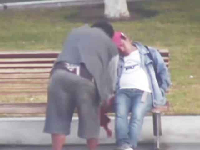 En la ciudad de Chimbote una cámara de seguridad captó a un falso taxista cuando este intentó arrebatarle un celular a hombre ebrio que dormía en una banca. Las imágenes registraron el preciso momento en el que este hombre en aparente estado de ebriedad se había quedado dormido en una banca de la plaza de armas de esa ciudad sin imaginar que casi fue víctima de un robo a plena luz del día.