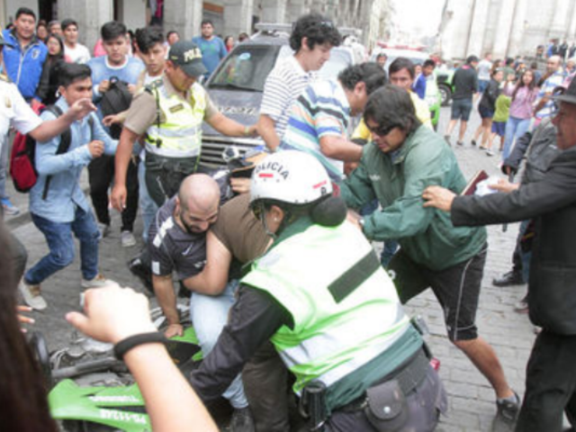 Las cosas se salieron de control en el corazón de la ciudad blanca ‘Arequipa’. Un grupo de jóvenes arequipeños, al ver jugar en la Plaza a los hinchas del equipo Santiago Wanderes, arremetieron contra ellos exigiéndoles que se retiren tanto del lugar como del país.