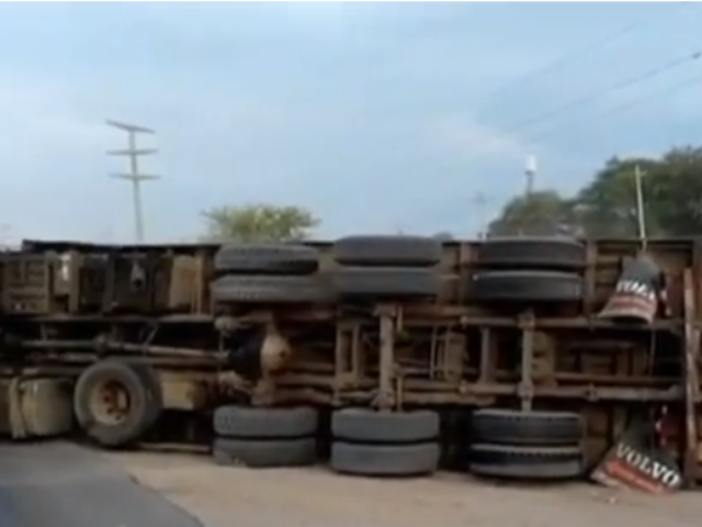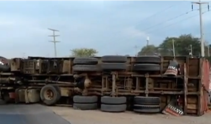 Agentes de Radiopatrulla de Sullana intervinieron un camión de contrabando. El conductor, quien al parecer hizo una mala maniobra se volcó al llegar a la carretera Sullana Tambo-grande, luego trató de fugar del lugar sin importar que en el camino pudo arrollar a los efectivos.