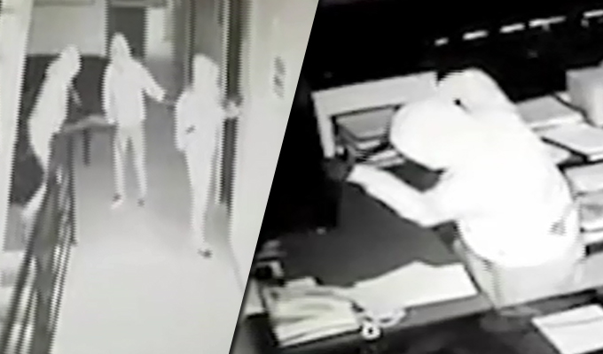 En Cajamarca una cámara de seguridad captó a tres delincuentes que robaron 40 mil soles de la caja fuerte de una empresa envasadora de gas. Como quedó registrado en video, cerca de la media noche, aparecen tres delincuentes encapuchados que ingresan al local.