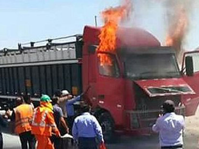 Según primeros informes el siniestro se habría originado por un corto circuito en el vehículo pesado.