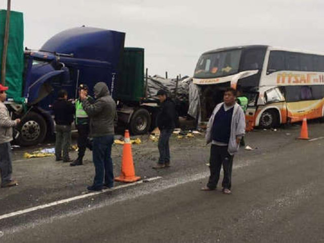 Dos tráilers chocaron frontalmente, minutos después un bus interprovincial impactó con ambos vehículos. El jefe departamental de los Bomberos señaló que la posible causa de este lamentable accidente sería la neblina de la zona que se registra en horas de la mañana.