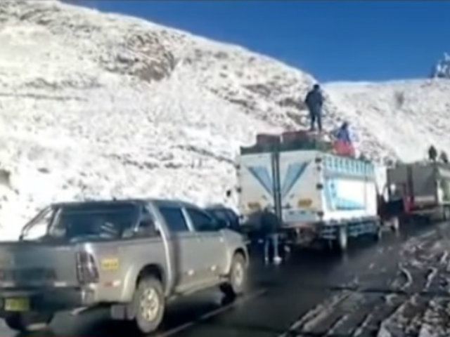 La carretera centra en la zona de Ticlio amaneció cubierta de blanco luego de una fuerte nevada registrada la noche del viernes.