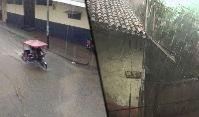 En Piura, en la provincia de Huancabamba, la ciudad soportó una de las lluvias más intensas de los últimos años que terminó inundando calles y viviendas. Según los pobladores fueron aproximadamente unos 40 minutos de lluvia torrencial.