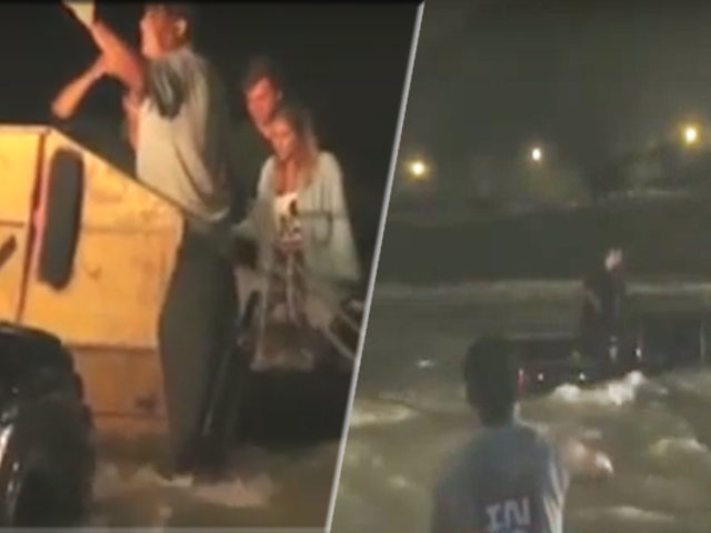 Serenos de la Municipalidad de Cieneguilla, auxiliaron a una pareja que se encontraba dentro de una camioneta que quedó atrapada en el fuerte caudal del río Lurín. Según primeros informes los ocupantes trataron de cruzar con el vehículo las aguas del río, sin percatarse de la fuerte corriente, que arrastró el vehículo de manera inmediata.