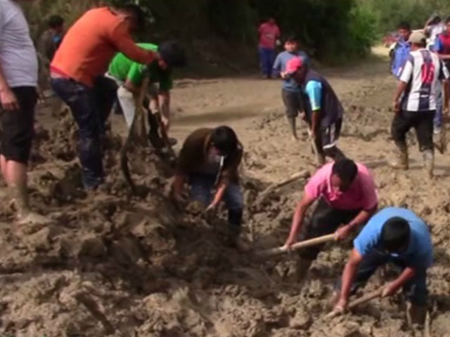 Huánuco: moradores despejan vías con lampas y picos tras huaico