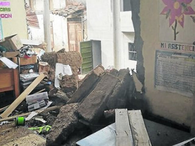 En La Libertad, un colegio colapsó debido a la intensa lluvia que cayó en la provincia de Santiago de Chuco. Una de las paredes de la institución “José Arístides Castro Gamboa”, se derrumbó. Debido a las fuertes precipitaciones que se registran en la sierra liberteña y con el último sismo registrado, parte del plantel sufrió el colapso en su infraestructura a pocos días de iniciar el año escolar.
