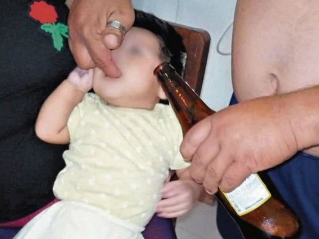 En las imágenes se observa cómo el adulto mete el dedo en un vaso con cerveza y luego lo pone dentro de la boca del bebé, quien tras hacer algunos gestos, genera la risa de la mujer que lo estaba cargando, incluso el hombre vuelve hacer lo mismo, pero esta vez con una botella de cerveza.