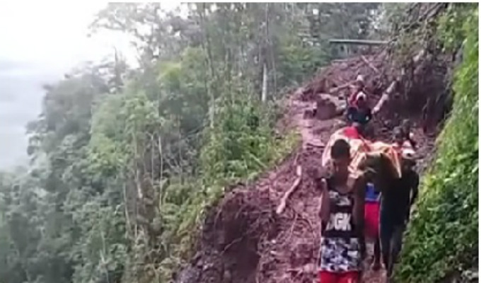 Un grupo de personas en Huánuco se vio obligado a llevar cargando en una camilla artesanal a una mujer que requería atención médica. Ellos tuvieron que caminar más de 3 kilómetros entre el lodo, sorteando rocas y subiendo lomas.