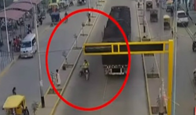 Un escolar se encontraba cruzando la pista, cuando de pronto aparece una moto lineal y lo atropella por atrás. El niño quedo tirado en el piso y el motociclista huyo del lugar.
