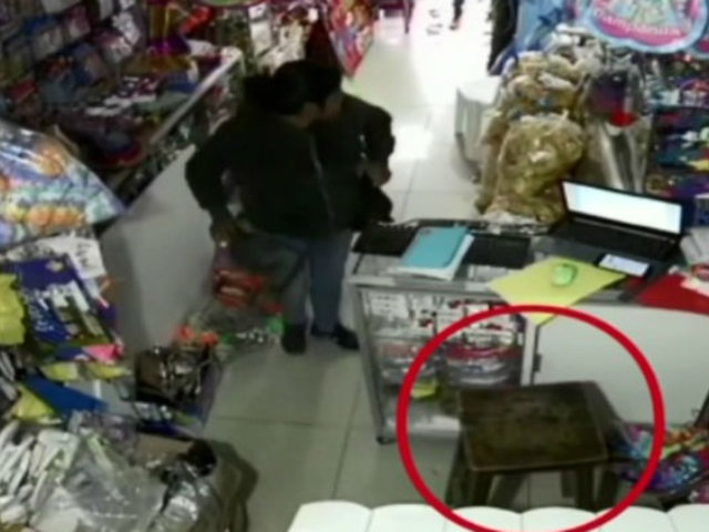 Delincuencia rampante en todo el Perú. En Ilo, cámaras de seguridad lograron captar el preciso instante en el cual una mujer se robó un canguro que contenía todas las ganancias del día al interior de una piñatería, en el departamento de Moquegua.