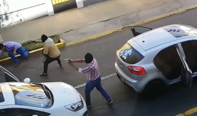 En el material audiovisual se observa a los delincuentes, que estaban armados y encapuchados, bajando de un moderno auto plomo y encañonaron al afectado, de 51 años.