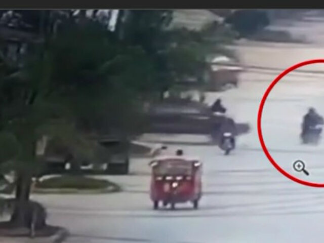 En las imágenes se puede observar a la moto transitando por la vía con total normalidad. De pronto, cuando se disponía a cruzar el jirón Angélica Frey, aparece una camioneta a toda velocidad que se lleva de encuentro el vehículo menor.